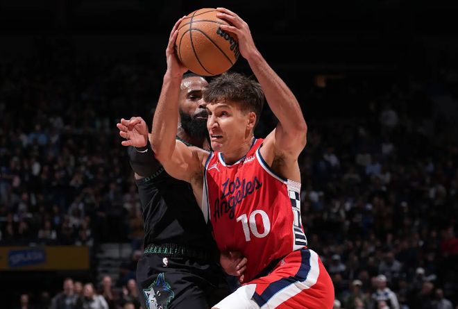 在此前的NBA常规赛中,明尼苏达森林狼队在末节发挥出色,以109-106击败洛杉矶快船队。本场比赛过后,五连胜的森林狼将战绩提升至15胜8负,继续排名西部第六;而遭遇两连败的快船队战绩跌至6胜18负,排名也从西部垫底跌至第二位。本场比赛,虽然快船队遗憾输掉了比赛,但是替补后场大将博格丹·博格达诺维奇的表现确实还不错。博格达诺维奇出战22分51秒,投篮7投4中,三分线外4投1中。他得到9分、1个篮板和2次助攻。他还有4次犯规,正负值为-7。博格达诺维奇在进攻端的掌控力还是不错的。他还表现出了良好的独立得分能力和持球进攻能力。他也是少数人之一队中能够通过个人能力给对手制造威胁的球员。他在进攻端也为球队提供了很多帮助和支持。然而问题在于,快船其他替补球员的表现已经是灾难级的。博格达诺维奇很努力,但当他的上场时间和球权都不多的时候,他确实没有办法发挥更大的作用。博格达诺维奇在上赛季中期的交易中从亚特兰大老鹰队交易到了快船队。加盟快船队后,博格达诺维奇上赛季在NBA常规赛中总共出场30次,场均出场25分钟。场均贡献11.4分3.1篮板3.2助攻0.7抢断0.2盖帽。他还有1.2次失误和2.3次犯规。他的投篮命中率为47.4%,三分命中率为42.7%,罚球命中率为87.5%。季后赛中,博格达诺维奇一共出场7次,场均出场16.7分钟。他场均得到6.4分、2.9个篮板场均贡献2.1次助攻和0.4次抢断。他还有1.6次失误和3.6次犯规。他的投篮命中率为36.4%,三分命中率为29.2%,罚球命中率为85.7%。本赛季开始以来,由于伤病和战术调整,博格达诺维奇在前24场比赛中总共出场10次,总计场均25.4分钟。场均贡献9.2分3.2篮板3.2助攻0.7抢断0.1盖帽。他还有1.3次失误和2.7次犯规。他的投篮命中率为39%,三分命中率为33.3%,罚球命中率为84.6%。博格达诺维奇本赛季的表现确实有一些亮点。虽然赛季初表现不佳,但他能够逐渐调整自己的感觉和状态,表现也开始逐渐好转。不过,从目前的情况来看,随着快船队解雇了克里斯·保罗,博格达诺维奇现在是队内为数不多的既能独立得分又能补篮的球员之一。并连接。接下来,快船确实应该给博格达诺维奇上场时间,否则球队只会在进攻端遇到更多问题。